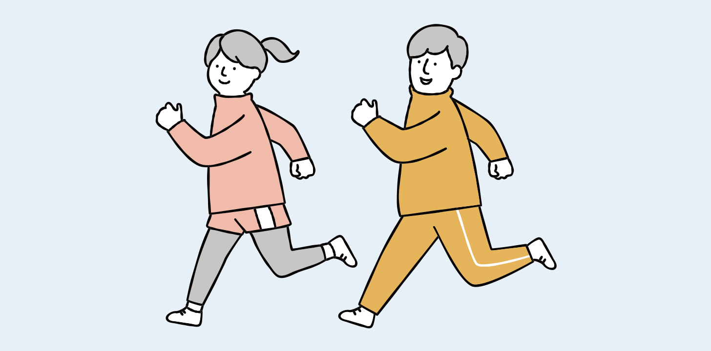 - 心拍数が軽く上がる程度の運動を、無理なく継続するのがポイント
