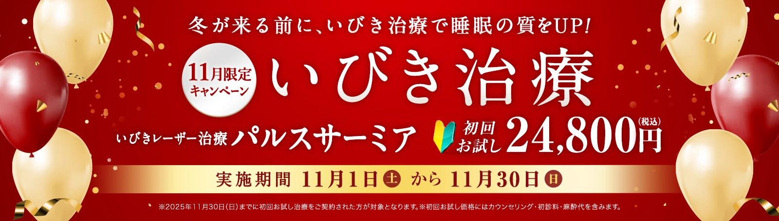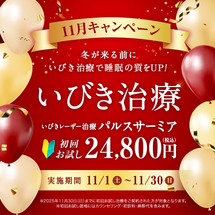 個人差はありますが、早い方では1〜2回の治療で「いびきが軽くなった」と感じることもあります。 効果をしっかり定着させるためには、一定の期間、継続して治療を受けることが大切です。状態に応じて、医師が最適なプランをご提案いたします。